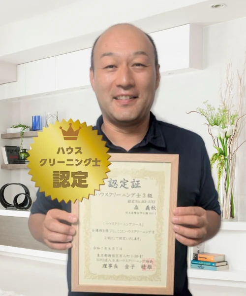 NPO法人日本ハウスクリーニング協会に加盟し、徹底した教育を受けたハウスクリーニング士がお伺いします。